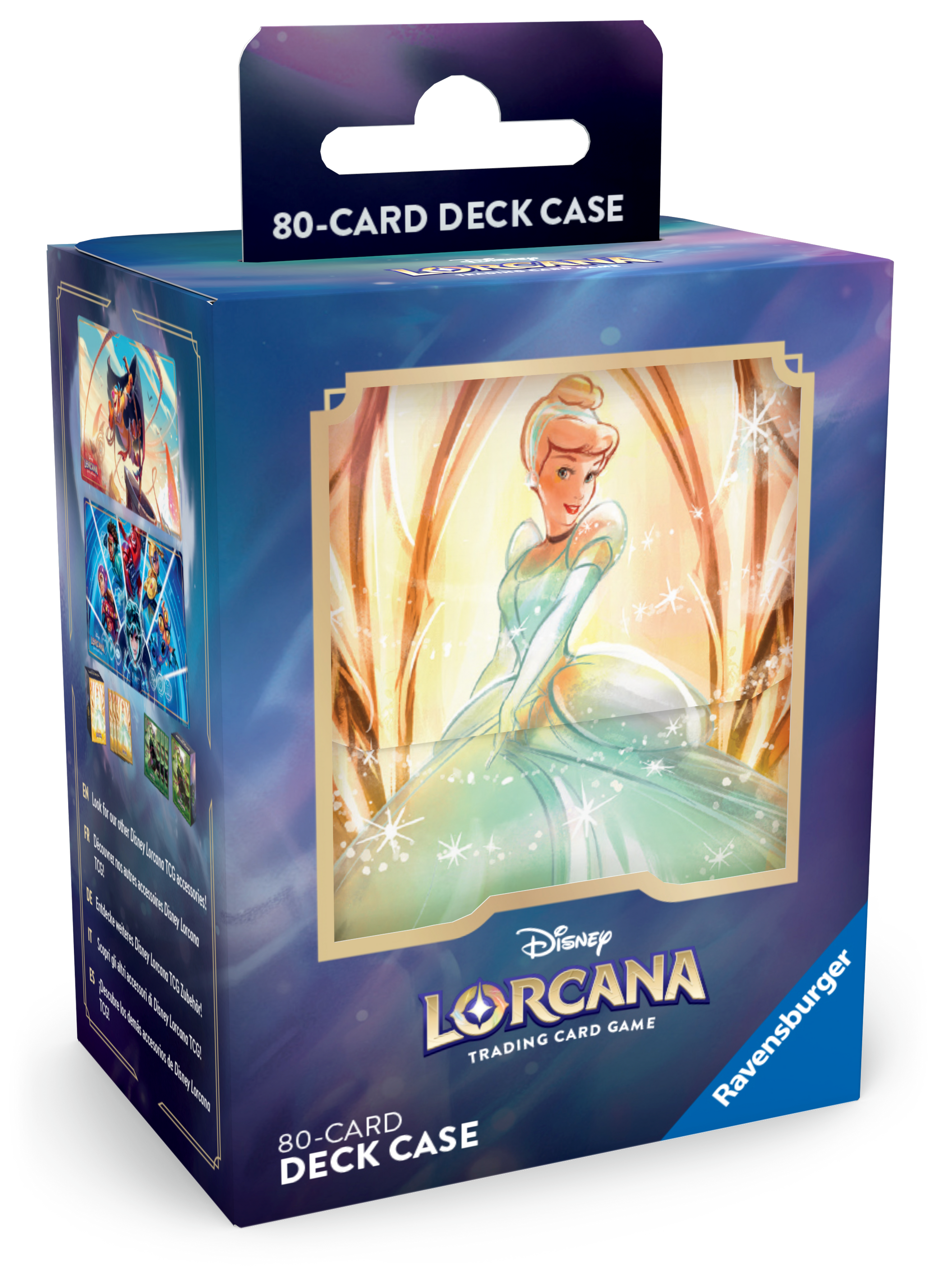 Protégez votre deck de cartes Lorcana avec élégance grâce à la deck box à l'effigie de Cendrillon. Cette boîte de rangement en plastique peut contenir jusqu'à 80 cartes pour une protection optimale lors de vos déplacements ou de vos soirées de jeu.
